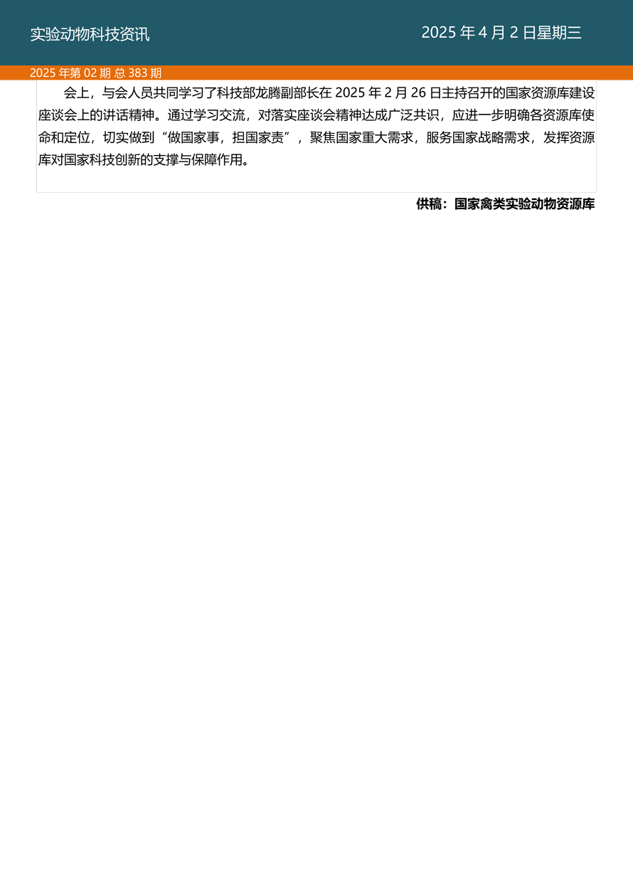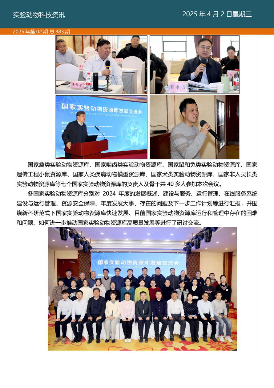 摘要:国家实验动物专家委员会工作活动简报由国家实验动物专家委员会主办,即时报道我国实验动物工作进展、行业发展动态、实验动物专家参与的重大活动等内容。本期主要内容——国家实验动物资源库发展交流会议在哈尔滨召开。
